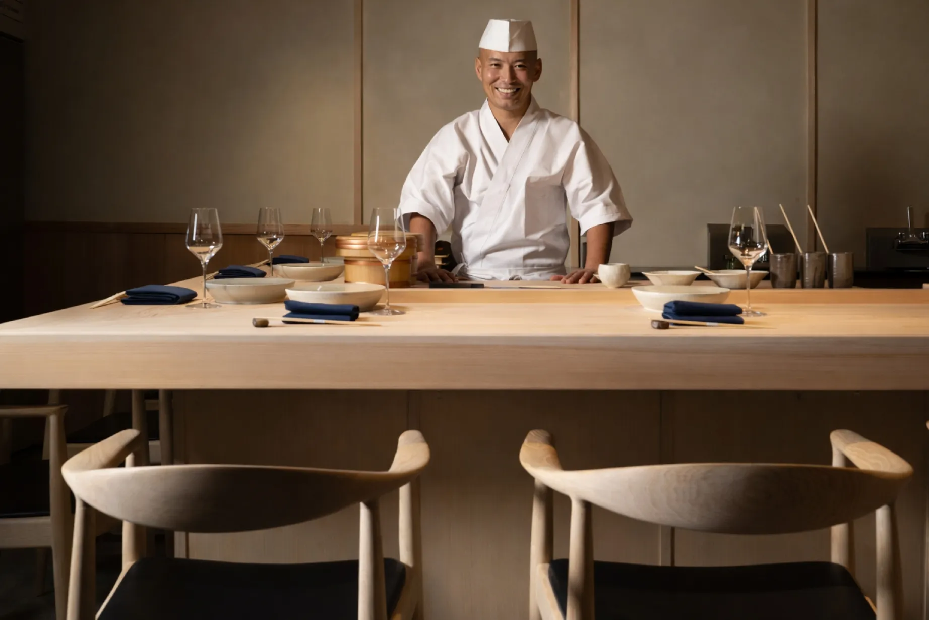 La estética y el servicio de Yasu Omakase reflejan una sensibilidad japonesa profunda, materializada en un mostrador de hinoki de 600 años, tallado con la misma madera usada en santuarios. Sin embargo, su corazón late al ritmo de una ciudad multicultural que ha adoptado lo mejor del mundo para reinventarlo a su modo.